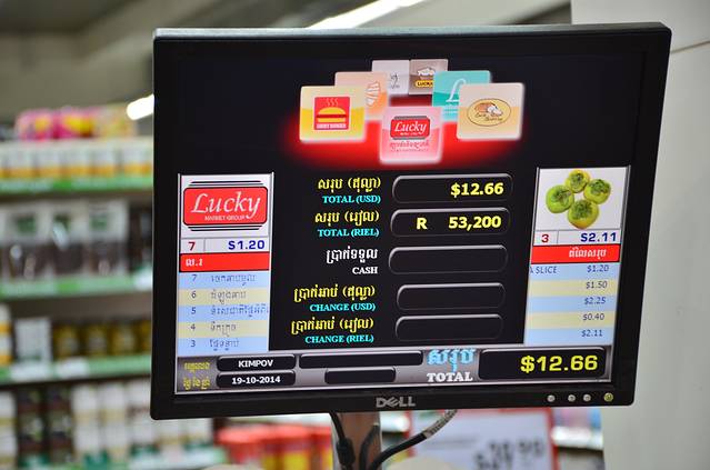 柬埔寨法定货币为瑞尔(KHR),但通用美金,在柬埔寨我是直接用美金兑换的瑞尔,当时100美金可兑换39万瑞尔(2014年10月17日汇率),基本上酒店,包车,门票都直接付的美金,买一些小纪念品,支付小费,小餐馆消费用的是瑞尔,由于瑞尔票面价值较大,付钱的时候要数清楚有几个零,目前人民币和瑞尔直接的汇率约为1人民币=643瑞尔。