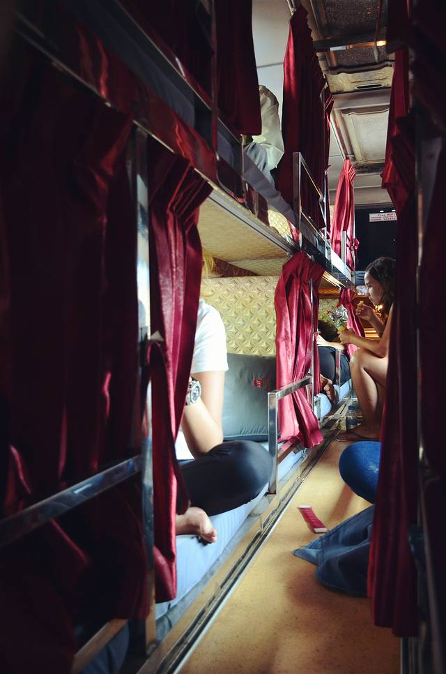有夜行巴士,可通过入住酒店代买,其中最出名的就是VirakBuntham Express Travel&Tour (VET)公司的夜巴,建议选择可以睡觉的Hotel Bus,如其名,帘子拉上像个小房间,可以躺下来睡觉,晚上8:30发车,16美金/人,差不多11小时,睡一觉就可抵达西哈努克,比较节约时间。此外还有Sleeping Bus,空间较窄,比Hotel Bus便宜3美金左右。