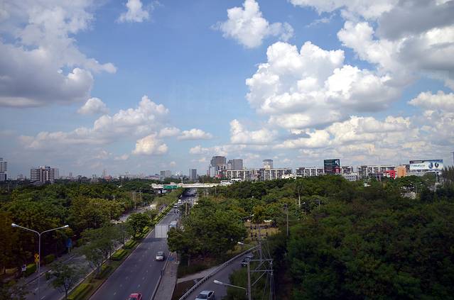 午饭后,乘坐City Line去曼谷素万那普机场,City Line类似于上海的轻轨,车内拍下的曼谷市景