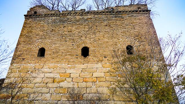 北四楼虽然没有北五楼高,但是视野开阔,景色在五座楼中是最好的。左侧另外三座敌楼依次排列。