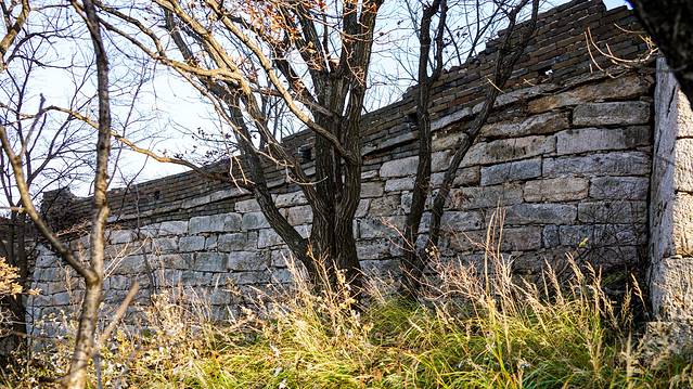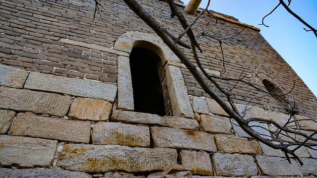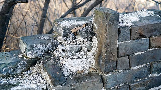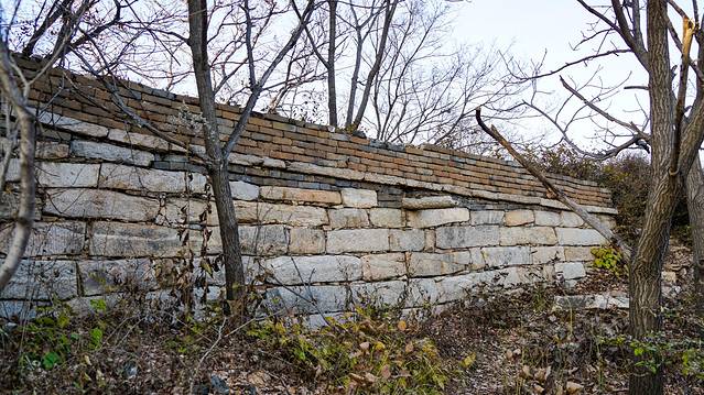 砖石城墙和石边的缝合处,城墙是在石边基础包砖的,留有士兵上下的蹬道。