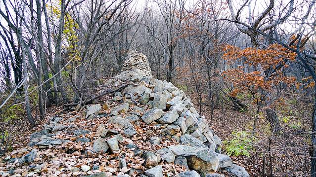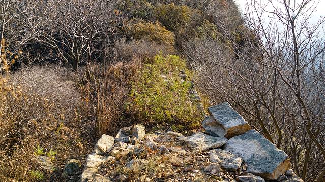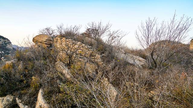 北四楼的登城口处有很高的石堆,石堆还算稳固,比较好上。