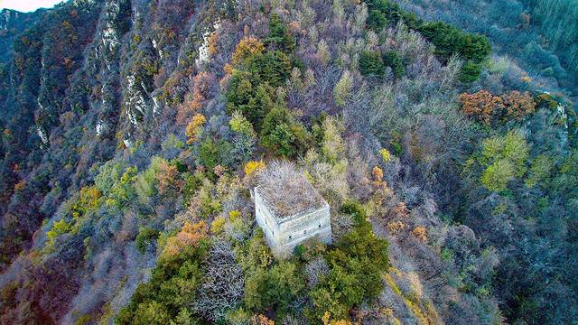 还能看到云蒙山长城的四方楼和圆形敌台。