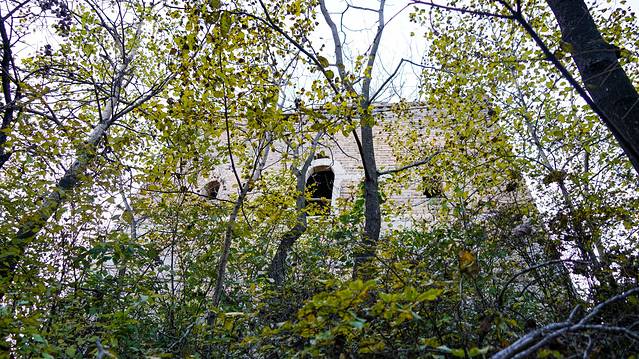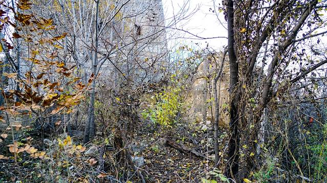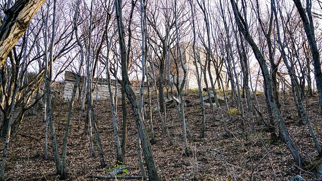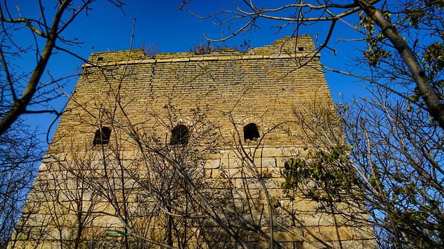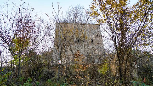 这座敌楼楼口距地约2.5米,无法攀爬,二层长满了树枝。