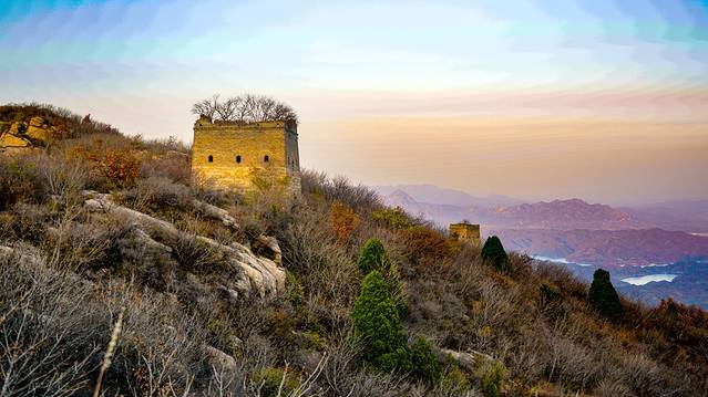 五座楼实为明朝所建五座长城碉楼,坐落于云蒙山麓,最高海拔约977米。这里背依云蒙山,前临密云水库,春碧夏黛,秋红冬白,景出天然。五座长城碉楼雄踞峰颠,气贯长虹,既有峰峦叠翠之奇姿,更有烟波浩渺之无岸。登斯楼也,可俯瞰密云水库,可远眺云蒙群峰,可饱览长城关楼,可抚今追昔,可思古探幽,不愧为“武库森严,屹长城于万里;文澜壮阔,起莲岳于三峰”。