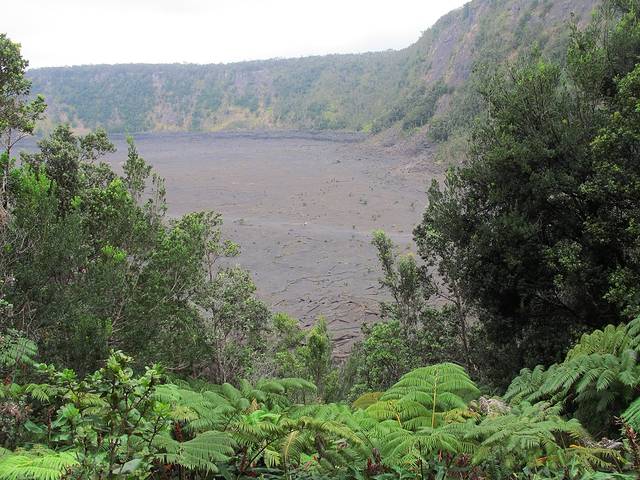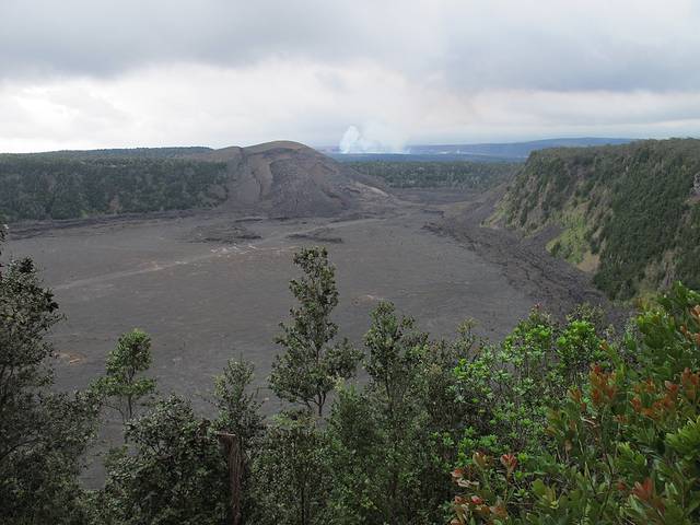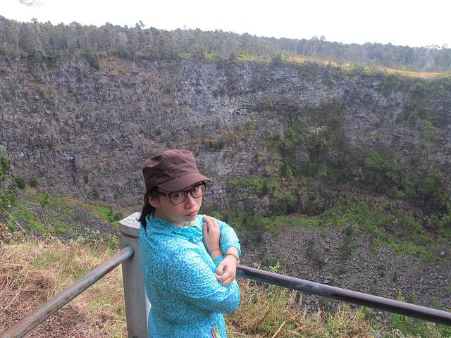 早知我们这种懒鸟是不能尽玩的,所以我昨天晚上提前拿老板给的游览手册做了功课。进了公园后,首先选择去Kilauea Iki Trail徒步。从Kilauea Iki Trail的出发点,可以俯看巨大的火山坑,并远眺火山口。