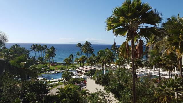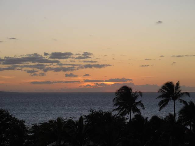 1月4日从欧胡岛飞到茂宜到后,5日在酒店里休整了一天。享受一下酒店的私属沙滩和泳池,并顺便带上面镜和呼吸管在泳池里复习一下水下的感觉。这次选了在Wailea的Andaz酒店,相对安静。Wailea海滩向西,每天的晚霞都很漂亮。