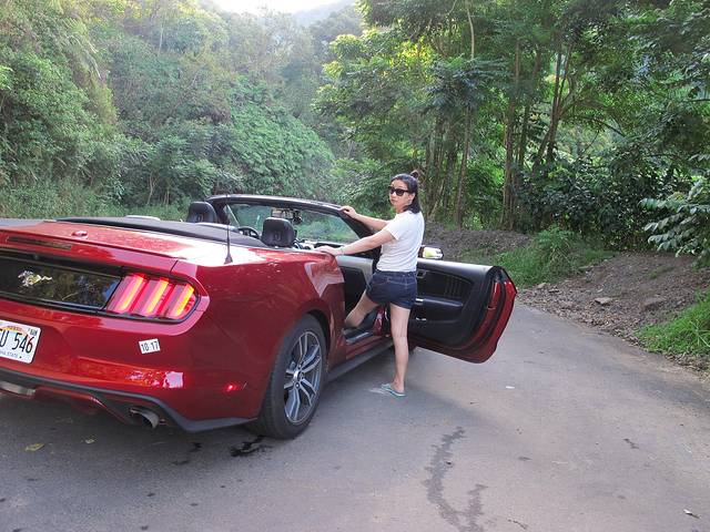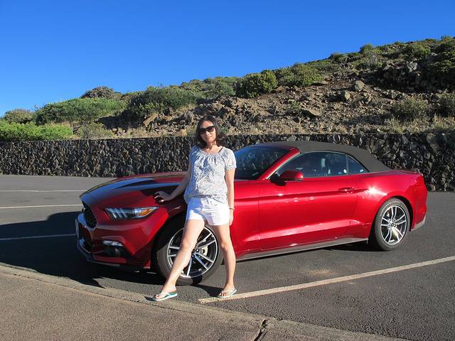 在茂宜岛我们租的是“推荐配置”敞篷野马。租车时店员问我是否要加入gas plan,即提前付一笔满箱的油钱(单价比市面价便宜),然后还车时不必去加油。这种计划是在能用光一箱油的情况下才有得赚。店员问我觉得是否会用一箱油时,我回想在欧胡岛时即便环岛几乎一圈,4天下来也才用了1/4箱油,于是笑答“不太可能”。结果没想到这匹野马是个油耗子。从Haleakala国家公园下来时就已经用了半箱了,想想后两天还有Hana路,更远更长,只得中途去加了一次油。等最后还车时,总共用了快一箱半。