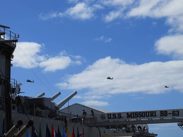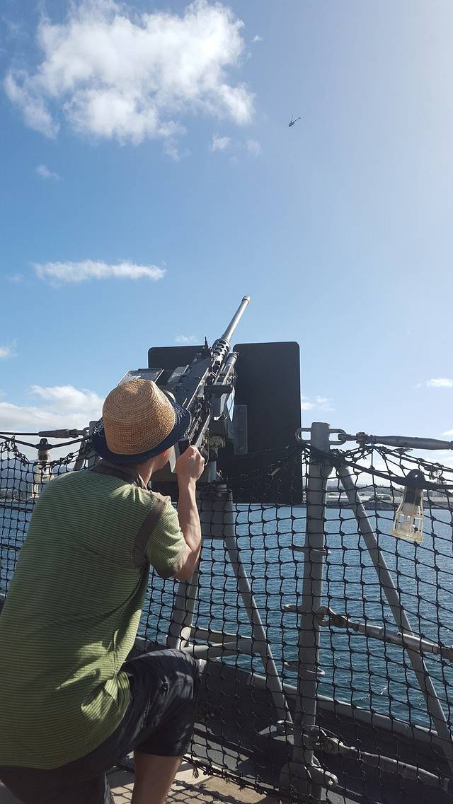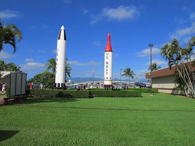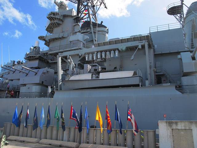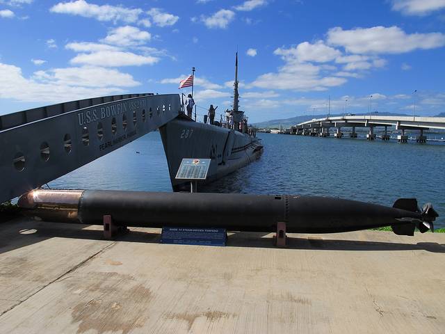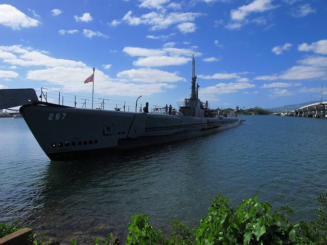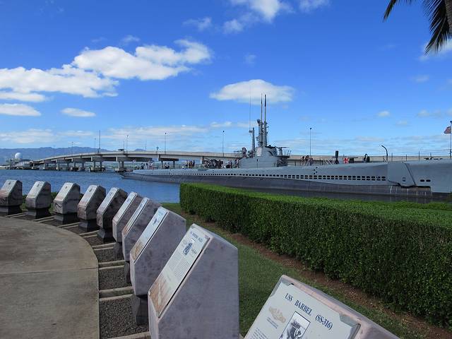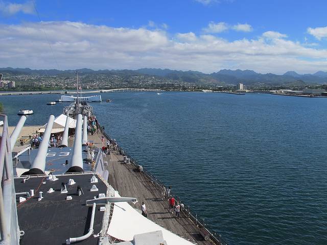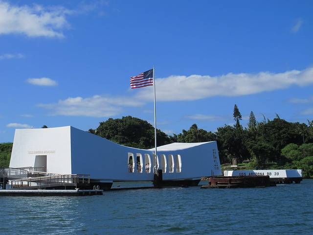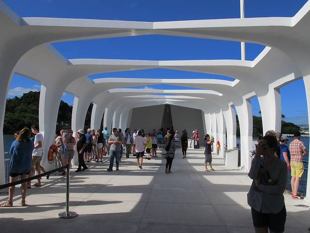 再到亚利桑那号的纪念馆。这艘在偷袭珍珠港中被击沉的最大的战列舰如今几乎完全没在水中。从建在它上面的纪念馆看下去,依然可见一滴滴油从锈迹斑斑的船体漏出来。