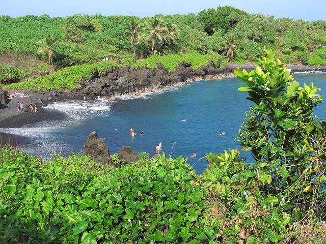 最后到达Wai'anapanapa State Park,看海边的火山岩和黑沙滩,风景不错。游玩了半日。
