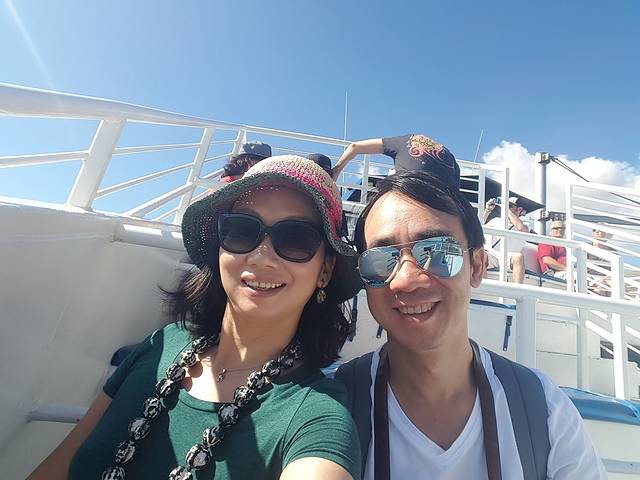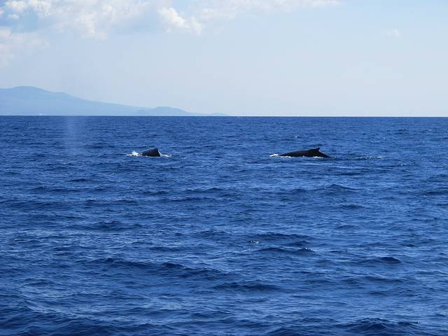 看鲸鱼选在7日,岸潜和船潜之间,算是休整。作为懒人,我们选的11:30出发的船。大晴天,烈日当头,船上无遮无挡,晒得我们一身鲸油。