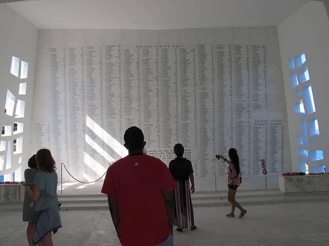 第三天去珍珠港。这种地标式的景点是一定要去的。由于功课没好好做,以至于临时发现提前一天网上买不到票,只好到酒店大堂去通过旅行社订了票。最初以为半天的行程,但实际从大巴来接到最后送回酒店,基本是一天了。