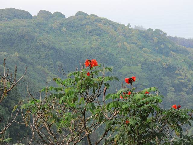 Hana路,是我们在茂宜岛的最后一天的安排。这次聪明了点,提前找到前台仔细问了一下路线,得知来回大约要6~7小时,再加上我们这种爱在景点晃悠不少时间的,需要早些出发。从Wailea出发,沿高速路跨过岛到另一端的海岸,开上Hana路。