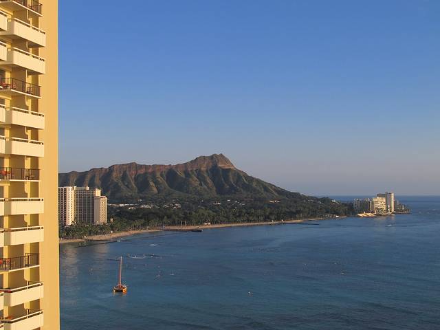 因为动手太晚,又很想住在Waikiki海滩附近,第一次到欧胡岛时订的Hilton不太令人满意,主要是太吵了。事后诸葛认为其实没什么必要一定住Waikiki海滩附近。