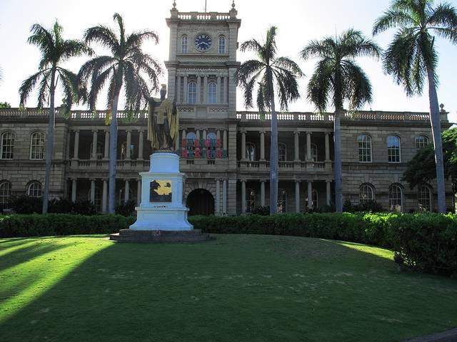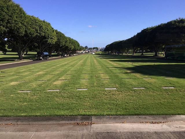 出了珍珠港,大巴还顺路去参观了太平洋国家纪念公墓和檀香山市区。特别是到了著名的《Five-O》拍摄的那幢小楼,老婆很开心。