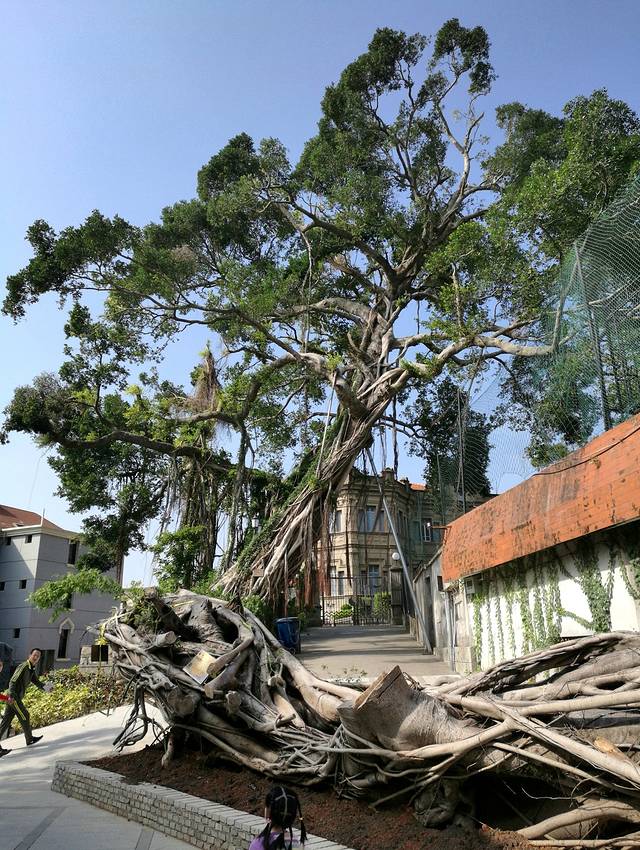 岛上比房子更老的是随处可见的大树,最多的就是榕树、南洋杉和龙眼。这些树树冠超级大,树干和树根简直分不清,走近看看树牌,动辄都是两三百年的树龄。岛上植被特别好,种类繁多,由于历史原因,外来树种也多,良好的光合作用和优质的空气使得这些植物生长的特别健康旺盛。尽管如此,有些老树还是被之前的台风连根拔起,横倒在路边,看这那裸露的树根,既震撼又惋惜。