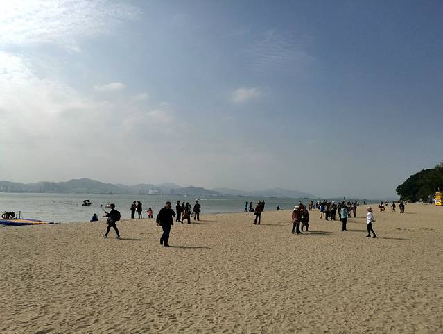 厦大正南方,就是白城沙滩了,从厦大的芙蓉餐厅出来向南走出来校门就是。沙滩比较大,沙子也干净,可以看到演武大桥和双子楼,比较壮观。沙滩挨着环岛路,停放着成排的自行车,可供租用,大都是单人或者双人的,想找可以带小孩子的,没找到。