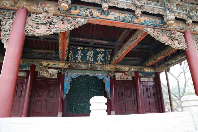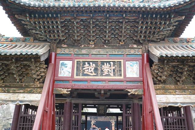 进到晋祠里面最有名气的一条线路就是中轴线了,三匾,三绝都是在中轴线上,建议大家10点钟左右出发,到了之后自己先玩玩两边的,或者拍照片。2点钟左右团体陆续进来,大家可以跟着别的团的导游逛中轴线。