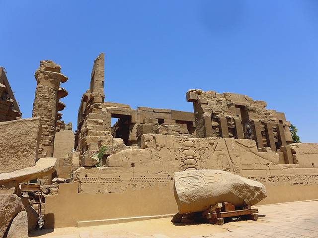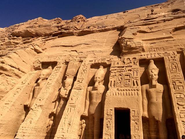 拉米西斯2世给埃及留下了很多故事和遗迹,阿布辛贝神庙就是其中很壮观的一个,也是相当于我们商朝时期的,虽然不是原址了,但还是能感受到当年二世对妻子的喜爱。由于原址的建造也是相当巧妙,每年的2月22日(拉姆西斯生日)和10月22日(奠基日)阳光会射进神庙,但是后来人们发现重建以后发现居然日子还偏差着一天。看来古人的智慧真不是我们后生能企及的。