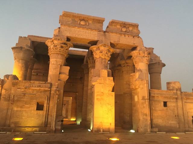 下午回到游轮,游轮开始走了,傍晚的时候来到科翁坡神庙。