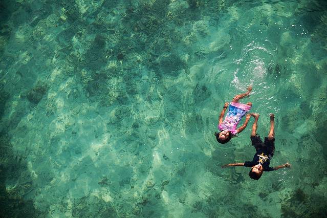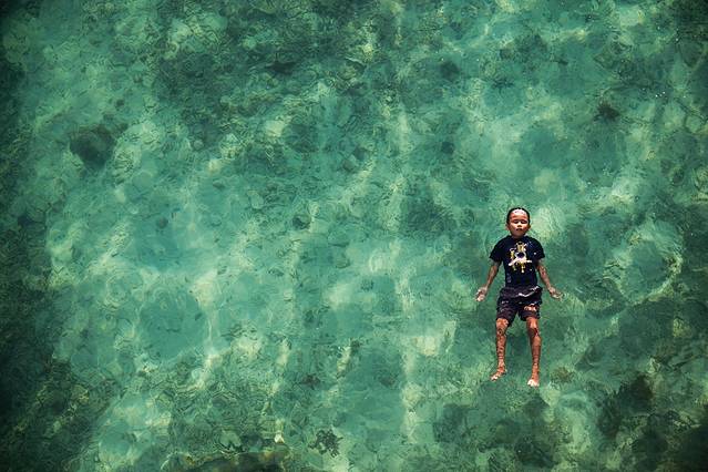 围着整个岛转了一圈我们回到酒店,发现好多旅客都聚集在酒店的平台上,时不时会传来尖叫声和水花声,我们也好奇的围上去,往平台上一看,一个黑黑的孩子从高台上一跃而下,在人们的惊呼声中一头扎进海水里。