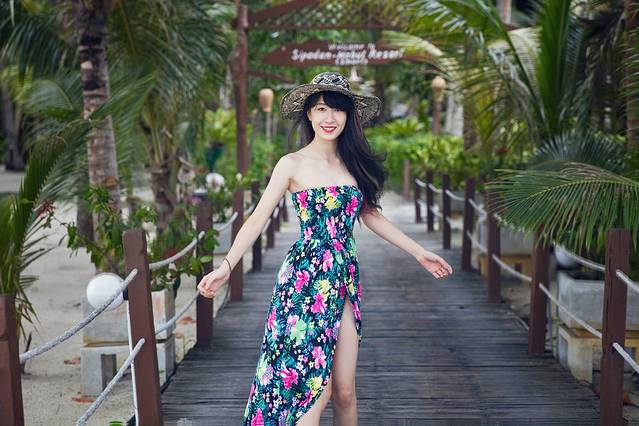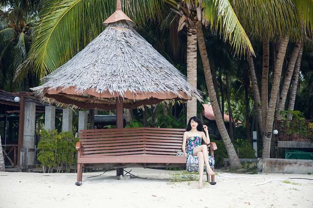 边走边拍,慢慢的,整个度假村被我们逛了一圈,回到酒店的后门,理太阳下山还有一些时间,这时候女王陛下跟我说:“时间还早,我去换套衣服去居民屋那边拍点不一样的怎么样?”