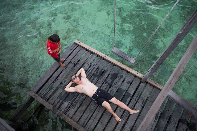 这次在仙本那的四个晚上,没有选择人气很旺的卡帕莱度假村,而是选择了一位诗巴丹水肺潜纪录保持者的潜店-Mabul Paradise Resort,位于菲律宾和东马来西亚之间的马布岛,性价比非常高,就连高级度假村才有的全淡水洗漱都有,虽然是限时段,但是以这个价钱来说,已经是非常厚道了。