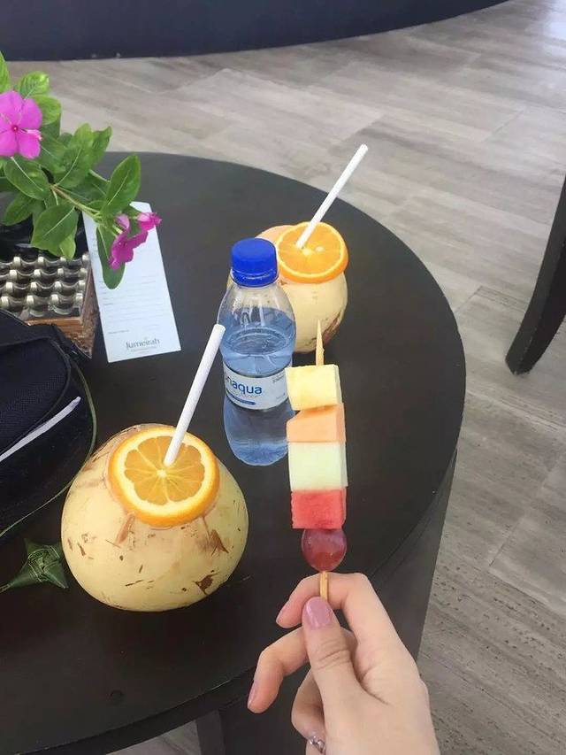 上了岛,有几个小黑敲锣打鼓的唱着民谣接待,同时送上两杯椰奶,以及水果和挂饰接待。由于JD是沙屋和水屋分离的,所以就在这个码头坐船可以去对面的水屋,基本上5-15min/次,无需过多的等待。接着就是管家耐心的指引了。