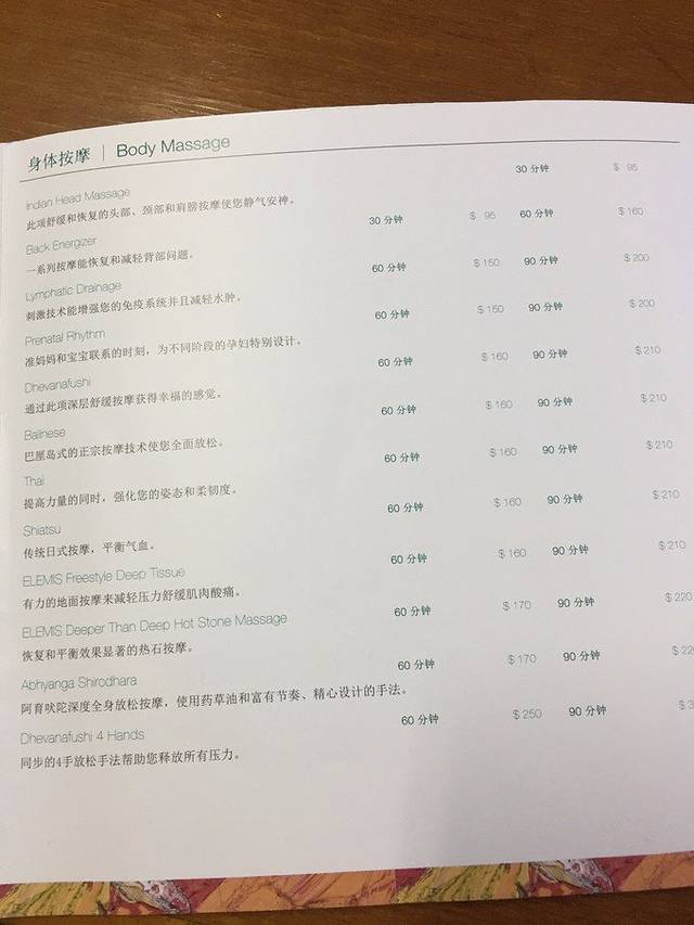 SPA感觉力道很轻吧,性价比不高,不推荐做,我个人感觉还没有中国足疗店一两百的做的好,这个见仁见智吧,看你想不想游玩了几天去放松一下。