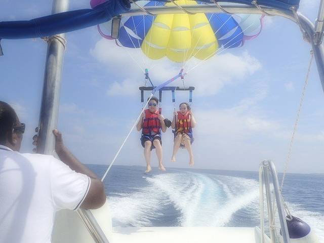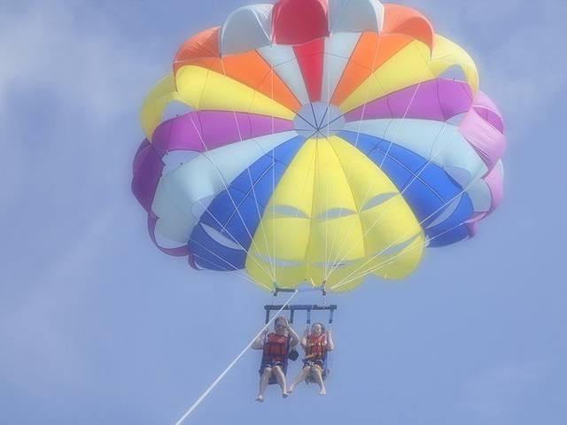 我个人玩了滑翔伞,这个会上升到70-75米,十分平稳,胆小的人也可以上去,这边有个8岁都小妹妹也上天了。。。另外还玩了皮艇冲浪,这个感觉一般吧,风景是不错,我个人觉得不够HIGH。其余的帆船什么的要上个2-3次课,我就没高兴去玩,这个看你想玩什么吧。