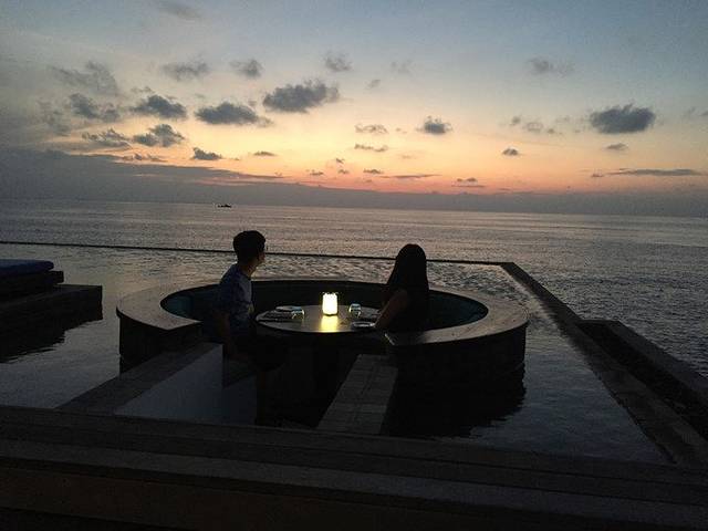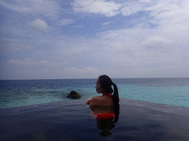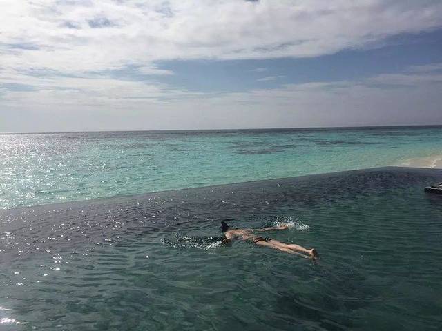主岛这边的大致情况如下:2个餐厅和1个酒吧,1个spa馆,旁边有个健身房,水上活动中心,咨询室(这里有个乒乓台,里面有个中国妹子),1个浮潜用品的租赁中心,1个商店(里面卖纪念品,酒店会送一张折扣卡吧,反正我是没用),1个公共的无边泳池(感觉里面游泳的人比较少,我进去游了两下拍了几张照)。