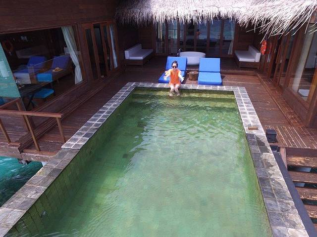 5JD岛水屋23号就在码头旁边,私密性不好,24号开始勉强可以接受,个人建议到岛上就和管家沟通,哪怕先住水屋再住沙屋,26号水屋下面就有属于自己的小的沙滩,感觉很不错。浮潜的话24号房间正前方往前游那边有一片珊瑚不错,也有条海沟。(感觉水屋这边人少没敢游太外面,就游到海沟这里为止),沙屋想要浮潜的话去SPA馆附近,那边也有一条海沟可以顺着游,而且那边有2条小鲨哦~