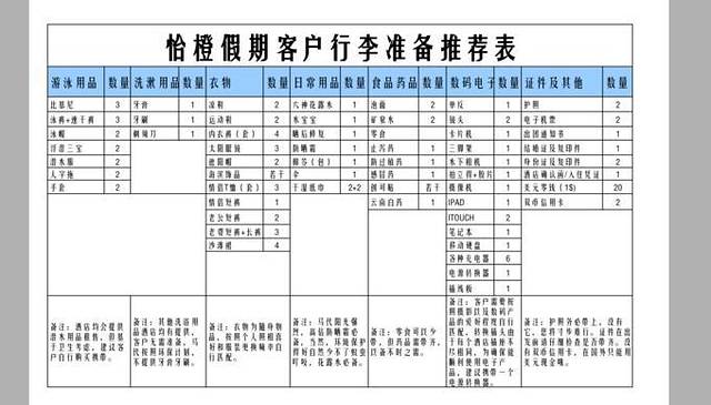 行李清单: