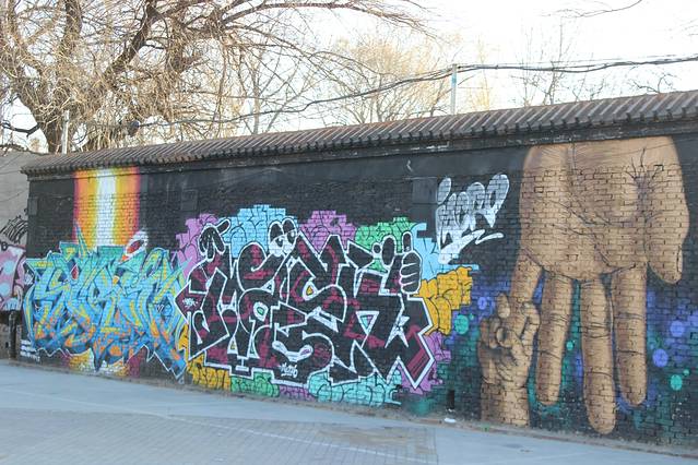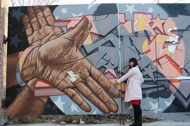 都是墙面上的涂鸦。每隔一段时间,便会有所变化。不过我很喜欢这只小手拼命抓着大手的感觉。就好像在表达:大地震的感觉。有些惊心。