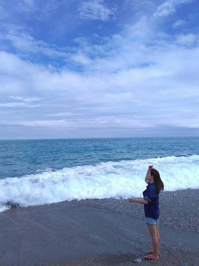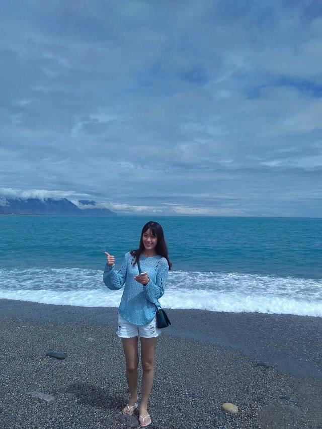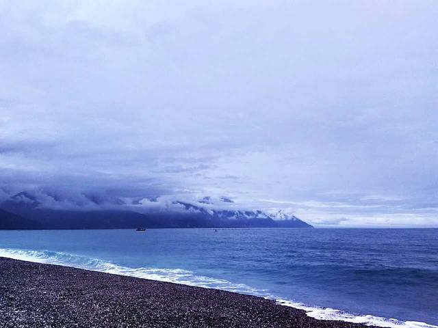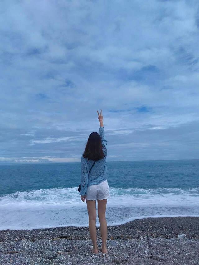吃完蛋饼两个人打了个计程车去七星潭,因为离得还近些,天气也还透着一点暖暖的阳光。