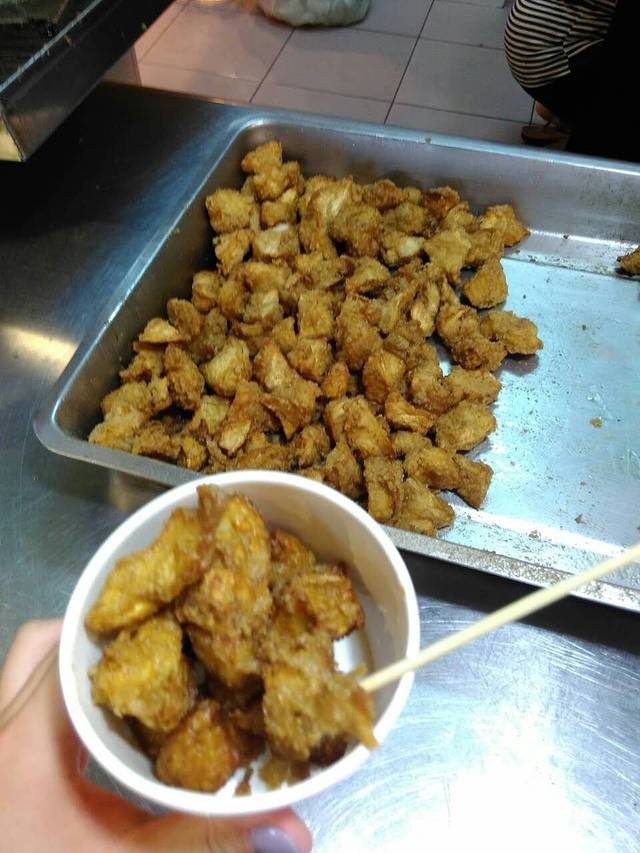 路上遇到小食摊,老陈吃了心心念念的盐酥鸡。