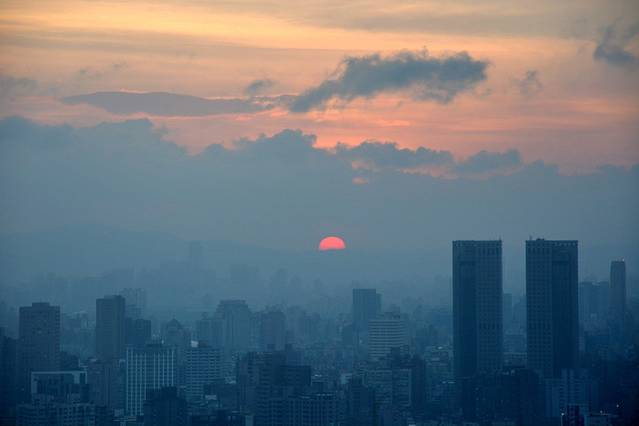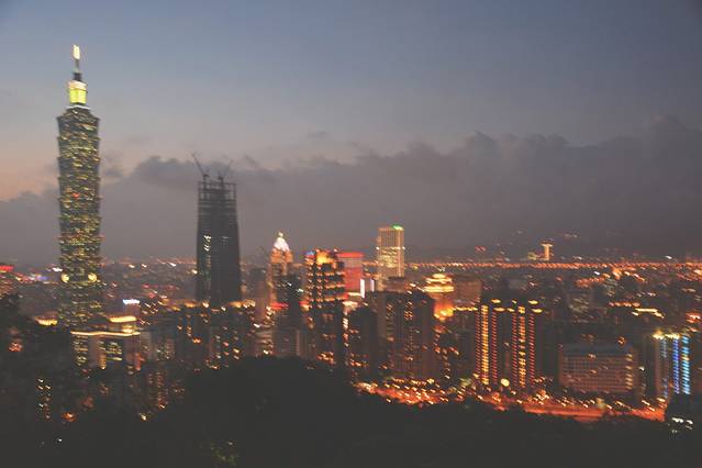 我们是傍晚时分去的象山,原本计划是上山看日落的,然而到半山腰的时候日已经落了一半了。两个人累得不要不要的,但是看到象山之下的台北,吹着凉凉的风,也还是觉得很惬意。