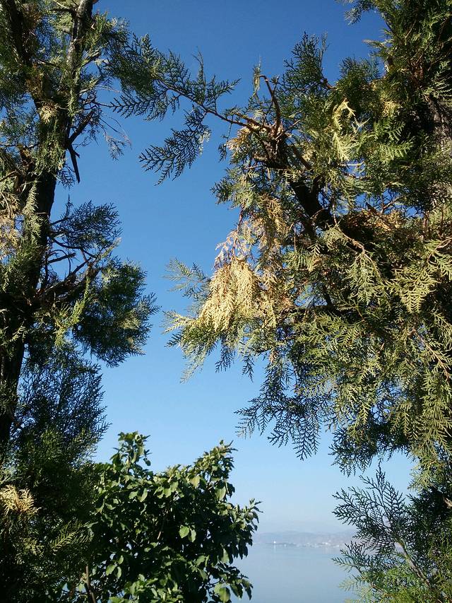 从感通索道上去的,这个索道有点……没有遮挡,给恐高的老公吓得呀!不过傍晚的景色真的很美!