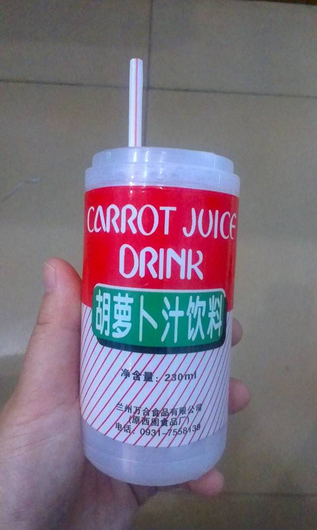 敦煌有两种饮料都还不错,一种是杏皮水,一种是这个胡萝卜汁,我们一家人都偏爱胡萝卜汁。