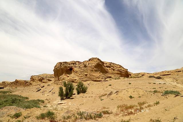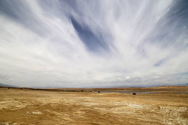 这张图片是托索湖,外星人遗址就在托索湖里边。从售票处往里开,最先遇到的就是可鲁克湖,可鲁克湖有点像沼泽地有许多水草的湖泊,往里开会遇到一个路口,直行是托索湖(其实直行和另外一条道都会经过托索湖,只不过选择直行只能看到托索湖的其中一部分),往左拐路牌显示外星人遗址,整个托索湖很大,往左拐也要开很久才能到外星人遗址,原因是路况太差。