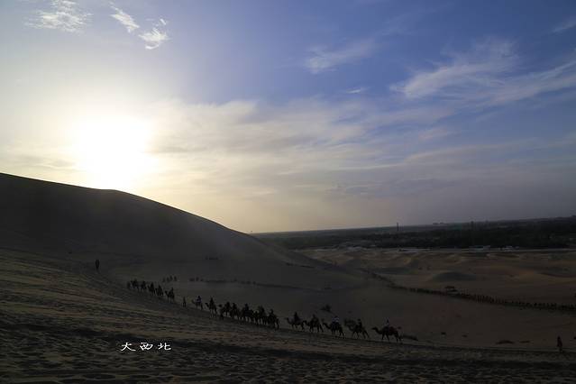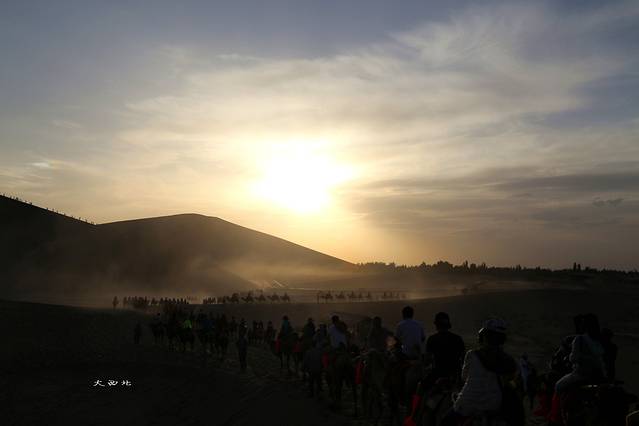 吸取了张掖的经验,鸣沙山我们没有早早的进去,而是到了下午5点多才进入景区,可是这次又错了,原因是骑骆驼要耽误很长的时间,主要是我们那一对大部分都是摄影驴友,他们花了另外的钱给向导让向导带着绕了一圈,害得我连日落都没看到。