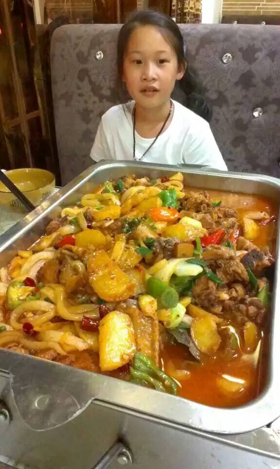 张掖好吃街,大盘鸡,听说是当地的特色菜。好大好大一份,甘肃的菜和面都是非常大一份的,这一盘我们一家人光吃菜都没吃完,而且是不吃米饭的情况下……