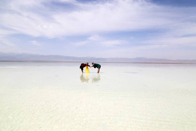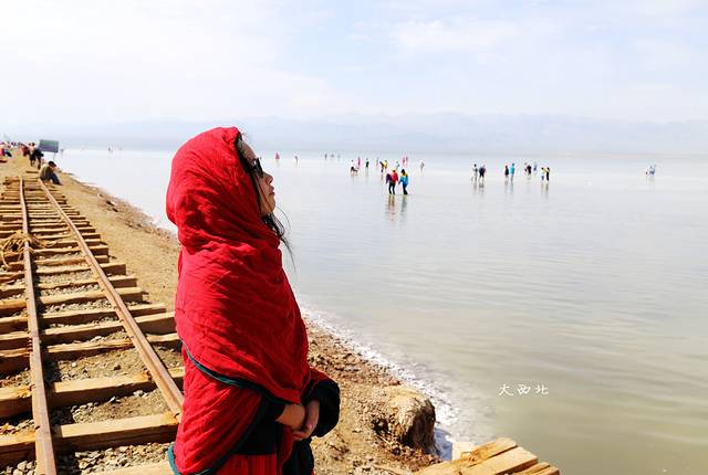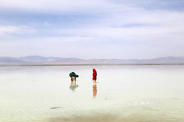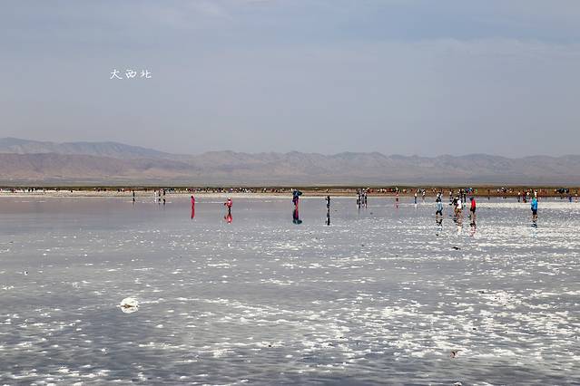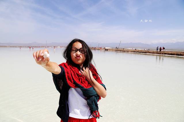 其实盐湖离盐雕比较近的那一块,湖里是很脏的,一脚下去全是淤泥。要往里走,里边的盐全部都结晶了。
