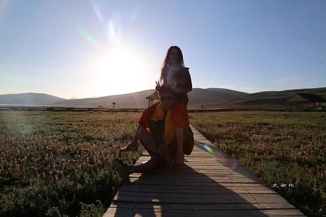 南山下来我们继续开往黑马河,之前在网上听说黑马河到鸟岛一段有一家旦切大叔的帐篷旅馆很出名,貌似是看日出的好地方。因为我没定住宿,所以抱着随便找一处靠湖边近的地方露营。看吧,我们露营的地方也很美,靠近湖边,离旦切大叔家开车几分钟路程。在黑马河镇中心到旦切大叔家路上。