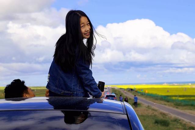青海湖畔油菜花田50元一个车(其实最开始那个60元就冤枉花了,因为到了黑马 河可以随便开车到湖边不要钱)