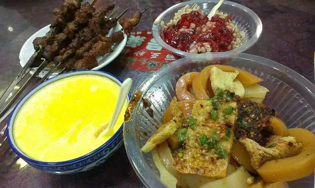 到西宁第一天晚上我们一家人就迫不及待的去了网上说的马忠食府,就在莫家街上非常好找,下午还好晚上人超多,坐都坐不下的节奏。马忠食府特色马忠酸奶10元一碗和5元一碗的我们都试过了,还是10元的好吃呢,价格贵也值得,真的是吃了一口就爱上了。酿皮就不好吃了,和我们四川的凉皮类似,但是味道就差远了。羊肉串没有甘肃的好吃。那个青稞做的小吃叫什么我也忘了,味道很独特,不是所有人吃得惯。喜欢的朋友还是可以尝试一下。