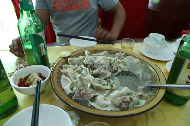 第一次吃饺子炖排骨,四川没这种吃法,不过还不错。