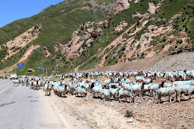 在西北旅游,一路遇到羊群的次数我都数不过来。让这些可爱的动物先过完公路再开车吧。