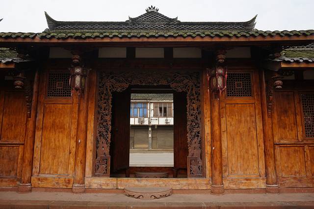 古镇街道布局呈二纵二横井字型结构,建筑面积达数十万平方米,古镇有保存完好的上正街、下正街、太平正街、太平街、太平横街、香市街、河坝街等清代古街古巷15条,其民居建筑属明清风格而又凸现出西蜀建筑的特色,奔流不息的出江河,经二堰渠,从古镇穿越而过,与古建筑交融在一起相映生辉,“小桥流水人家”的美景处处可见,是川西规模最大、保存最为完好的西蜀水乡古镇。在古镇所有的景点都不要门票,你不经意地走进古老的院子,主人也会热情地招呼请你座。很多院子前面临街后面依水,前后相通,很是方便。