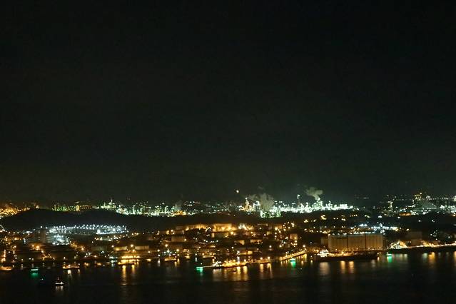远处的蔚山工业基地365天灯光不灭,闪闪烁烁,象征着蔚山的生命。